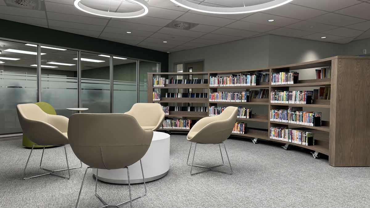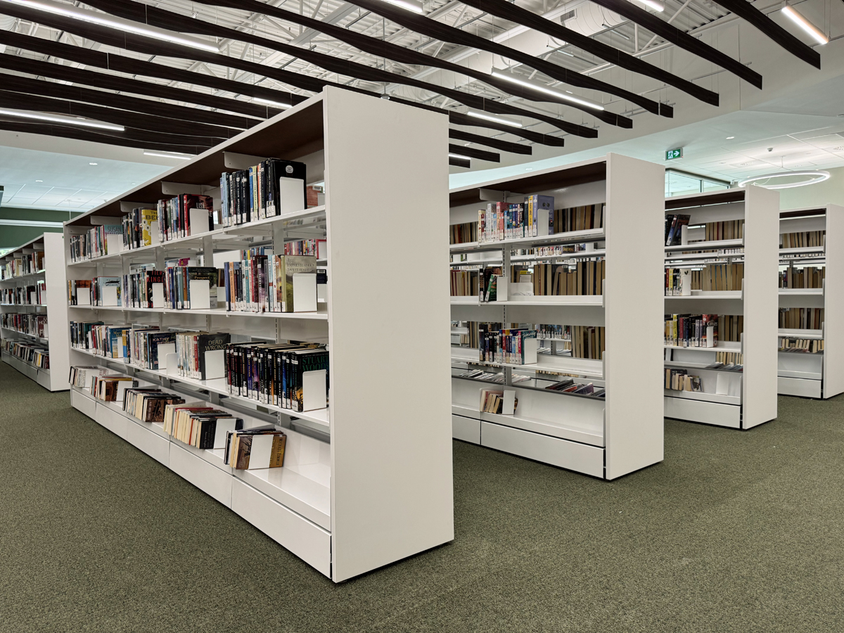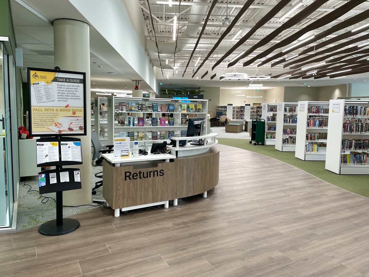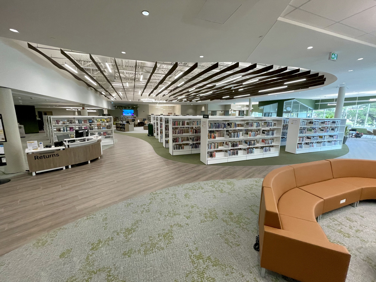 Our new New Appleby Branch in the making—from the architect's vision to construction in action—and to ready to open! Check out the interactive digital wall screen in the children's area! 09/25 Book MakerStudio to use—free with your Burlington Public Library card! 09/25 MakerStudio B for editing your audio projects. 09/25 MakerStudio A for video editing. 09/25 A panoramic view of the branch. Ready to greet you! 09/25 Here's where you can return your items to staff inside the branch. 09/25 This bookable space seats eight. Perfect for small meetings. 09/25 Catch up with friends in the seating area overlooking New Street. 09/25 Lots of bright space to study and work. 09/25 Kids can browse the fiction collection and then relax with a great read. 09/25 One of the larger bookable work spaces. 09/25 A bookable meeting room—free! 09/25 The collection starts to arrive. 08/25 A panoramic view of the branch. 08/25 Work and study space. 08/25 Lots of unpacking and assembling. 08/25 Less than two months until we open! 08/25 Shelves waiting for some books! 08/25 Painting, flooring, and lighting near completion. 06/25 Inside a bookable meeting/study room. 06/25 Work & study area, view 1. 06/25 Work & study area, view 2. 06/25 View of the Reading area. 06/25 Fine finishing touches make a difference! 06/25 Looking to New Street, by the MakerStudio. 06/25 A panoramic view of the branch. 06/25 A panoramic view of the branch. 04/25 One of the meeting rooms, as construction continues. 04/25 Even the lighting is eye-catching! 04/25 Reading area, looking in. 04/25 Reading area, looking out. 04/25 Bright lights, high ceilings. 04/25 Interior, 04/25 Outside the MakerStudio. 04/25 A bright and cheery children's area for tots and their adults. Bookable study rooms, perfect for small meetings! Reading area looking south to New Street. South-facing entrance into the community centre. Seating area overlooking the program room. Greeter desk from the branch entrance. The reading area and computer space facing New Street. Brightly lit and accessible space for around 30,000 items. Bring your laptop and settle in at the work and study space. A view of the new Bateman Community Centre & Library from New Street. Bright and airy spaces for relaxing, studying, and catching up with friends. 02/25 Site of the new MakerStudio, where you can record and edit video and audio. 02/25 The reading area facing New Street. 02/25