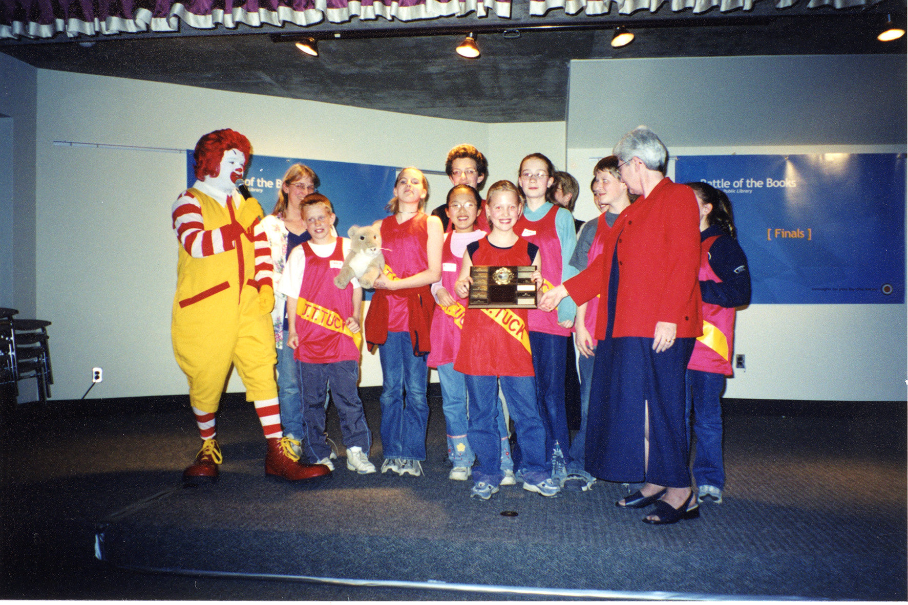 The Battles did not slow down in the 2000s. Instead, 2002 broke previous participation records with 16 junior teams and 14 senior teams testing their literary knowledge. Sponsored that year by Susan and Ralph Sgro, owners of McDonald's Burlington, special guest Ronald McDonald hosted the awards ceremony! It was a banner year for Burington, with the John T. Tuck Senior Team becoming Halton Regional Senior Champions.