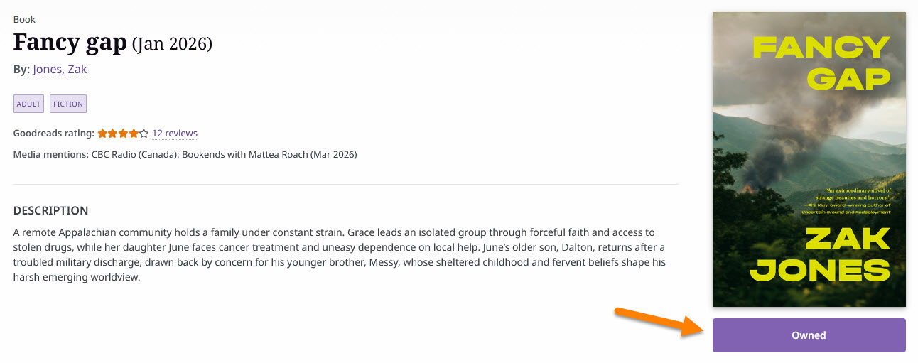 When you click on a title, you will see its Availability status—either ‘Owned’ or ‘Not owned’ by Burlington Public Library. You can then sign into your My BPL account to place a hold.