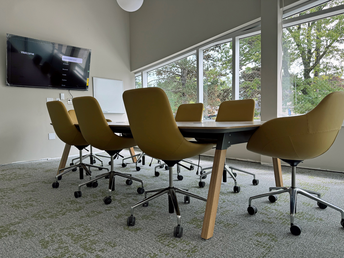 - Included: Table, eight chairs, whiteboard, Wi-Fi (TV screen temporarily unavailable)
