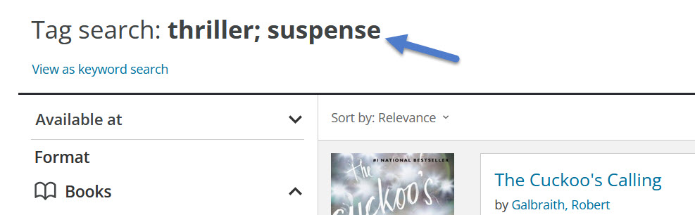 Once you click on a tag, you will see a curated list of titles in the online catalogue that may interest you.